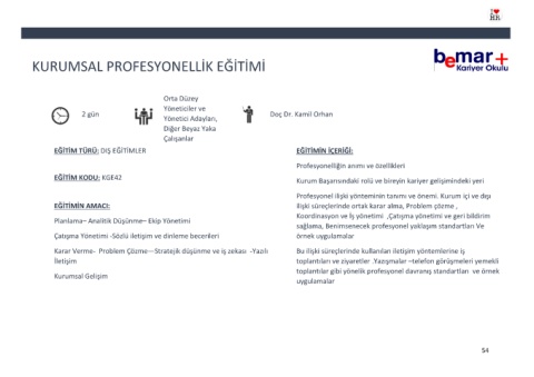KURUMSAL PROFESYONELLİK EĞİTİMİ