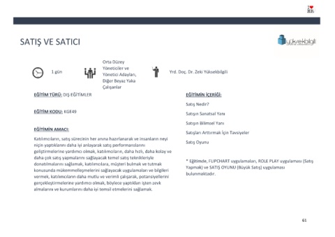 * Eğitimde, FLIPCHART uygulamaları, ROLE PLAY uygulaması (Satış