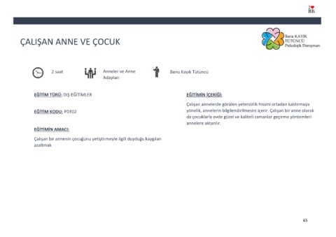 EĞİTİM KODU: PDE02 yönelik, annelerin bilgilendirilmesini içerir. Çalışan bir anne olarak